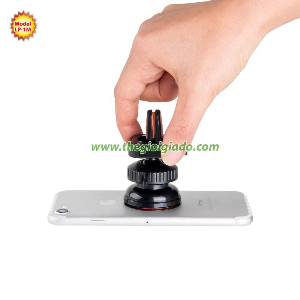- Bề mặt giá đỡ điện thoại LP-1M có keo dính 3M và hút nam châm.