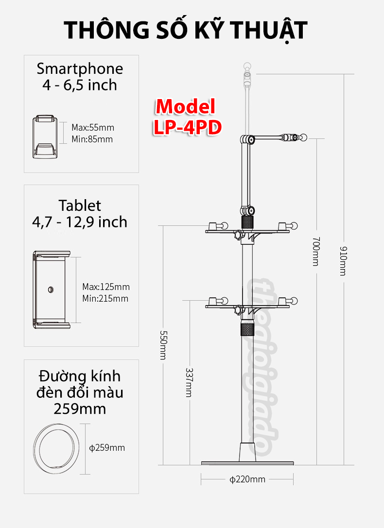 GIÁ ĐỠ LIVESTREAM ĐA NĂNG CHO ĐIỆN THOẠI & MÁY TÍNH BẢNG MODEL LP-4P/LP-4PD